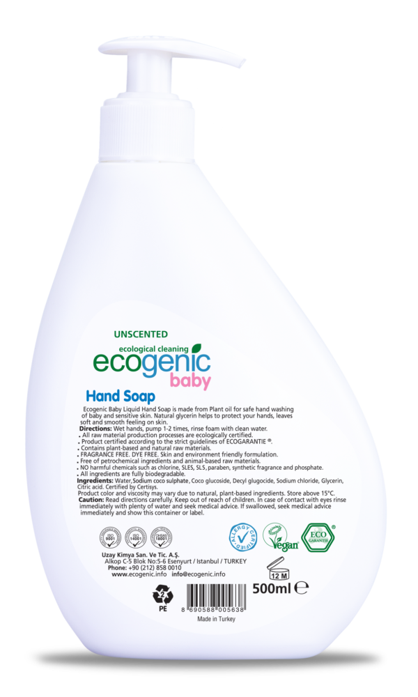 Ecogenic Liquid Hand soap is made from Plant oil for safe hand washing of baby and sensitive skin. Natural glycerin helps to protect your hands, leaves soft and smooth feeling on skin.